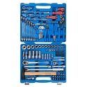 Набор: 110 шт • Ключи: комбинированные, шестигранные • Головки: 6-ти гранные головки, свечные • Ключей-трещоток: 2 шт • Хранение: пластиковый кейс