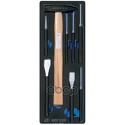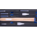 КомплектацияКернер 761 4 x 120Выколотка 764 Ø3 x 150, Ø4 x 150, Ø5 x 165, Ø6 x 180Зубило 762 Ø17 x 150, Ø20 x 175Молоток 7821-30 300 гр.Количество предметов: 8Материалы: EVAРазмер ложемента: 375 х 140 ммУпаковка: картонВес: 1,28 кг