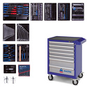 КомплектацияМодуль 1Набор отверток, съемник клипс и гибкий магнит, 19 предметов 9-31919MRМодуль 2Набор торцевых головок 1/2" с принадлежностями, 33 предмета 9-4333MR03Набор торцевых головок 3/8" с принадлежностями, 23 предмета 9-3523MRМодуль 3Набор ударных головок 1/2" и торцевых головок 1/4" с принадлежностями, 40 предметов 9-7540MRНабор торцевых насадок, шестигранники Г-образные и разрезные ключи, 31 предметов 9-90131MRМодуль 4Набор накидных ключей, 11 предметов 9-1711MRНабор комбинированных ключей, 16 предметов 9-1216MR03Модуль 5Набор переставные клещи, разводной ключ и молоток, 3 предмета 9-90103PP02Набор съемников стопорных колец, пассатижей и бокорезов, 7 предметов 9-40207GPМодуль 6Набор отвертка ударная 5/16" с принадлежностями, 6 предметов 9-4128FRВспомогательный инструментНабор выколоток, бородков, кернеров, 10 предметов 1010PRСъемник подшипников 2-х захватный 100 мм 7962-04Съемник подшипников 3-х захватный 100 мм 7963-04Тележка инструментальная7 выдвижных полок, цвет синий Количество предметов: 204Количество ложементов: 10Размеры тележки в сборе: 460 х 680 х 955 ммУпаковка: картонВес: 86,7 кг