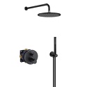 Устройство: душевая система • Смеситель: термостатический • Ручной душ (душевая лейка): настройки 1 шт • Верхний душ (тропический): размер 300 мм, настройки 1 шт • Комплектация: ручной душ, верхний душ, смеситель, шланг, крепление ручного душа