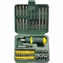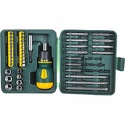 Комплектация- Отвертка реверсивная;- Удлинитель магнитный для бит;- Адаптер для головок;- 7 торцевых головок: 5; 6; 7; 8; 10; 11; 12 мм.;- 19 бит по 25 мм.: SL 4; SL 6; SL 7,2; PH № 1; PH № 2 — 2 шт.; PH № 3; PZ № 1; PZ № 2; PZ № 3; HEX: 3, 4, 5, 6; TORX: T9, T15, T20, T25, T30;- 8 бит по 50 мм.: SL 4; SL 6; PH № 1; PH № 2; PH № 3; PZ № 1; PZ № 2; PZ № 3;- 3 биты по 100 мм.: SL 6; PH № 2; PZ № 2;- Сверла диаметром 2; 3; 4 мм.;- Пластмассовый бокс.