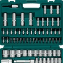 КомплектацияГоловки торцовые FLANK 1/2″ 18 шт. - 10, 11, 12, 13, 14, 15, 16, 17, 18, 19, 20, 21, 22, 23, 24, 27, 30, 32 ммГоловки торцовые удлиненные FLANK 1/2″ 4 шт. - 14, 15, 17, 19 ммГоловки торцовые свечные с резиновой вставкой 1/2″ 2 шт. - 16, 21 ммГоловки торцовые FLANK 1/4″ 13 шт. - 4, 4.5, 5, 5.5, 6, 7, 8, 9, 10, 11, 12, 13, 14 ммГоловки торцовые удлиненные FLANK 1/4″ 8 шт. - 6, 7, 8, 9, 10, 11, 12, 13 ммТрещотка для торцовых головок с быстрым сбросом 72 зубьев 2 шт. - 1/2″, 1/4″Вороток-отвертка 1/4″ 1 шт. - 150 ммУдлинители для торцовых головок 1/2″ 2 шт. - 125, 250 ммУдлинители 1/4″ 2 шт. - 50, 100 ммУдлинитель гибкий 1/4″ 1 шт. - 150 ммШарнир карданный 2 шт. - 1/2″, 1/4″Вороток Т-образный 1 шт. - 1/4″Адаптер 3-х позиционный 1 шт. - 3/8″F х 1/2″MАдаптер для бит 1 шт. - SQ 1/2″ - HEX 8 ммБиты-головки торцовые 1/4″ 17 шт. - SL4, SL5.5, SL7, PH1, PH2, PZ1, PZ2, Т8, T10, T15, T20, T25, T30, H3, H4, H5, H6Биты 8 мм х 30 мм 15 шт. - H8, H10, H12, H14, SL8, SL10, SL12, PH3, PH4, PZ3, PZ4, T40, T45, T50, T55Ключи имбусовые 3 шт. - 1.5, 2, 2.5 мм