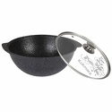 Артикул № 530925 Линия «Мраморная» - это функциональная посуда из толстостенного литого алюминия, обладающая прекрасными теплораспределительными свойствами. Теперь на всю посуду данной линии наносится супертехнологичное антипригарное покрытие Greblon C2+ «Rough» от немецкой компании Weilburger Coatings GmbH. Данное покрытие визуально и на ощупь очень похоже на поверхность камня, а по прочности даже его превосходит, благодаря использованию в формуле минералов, твердость которых близка по твердости алмазов.