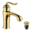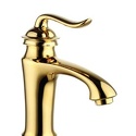 Высота излива - 76, Аэратор - Есть, Материал корпуса - Латунь, Длина излива - 114, Тип - Однозахватный, Покрытие - Золото, Количество монтажных отверстий - 1, Встраиваемый - Нет, Назначение - Для умывальника, Максимальный расход воды - 22, Форма излива - Традиционная, Донный клапан - Есть, Тип подводки - Гибкая, Поворотный излив - Нет, Термостат - Нет, Присоединительный размер - 1\2", Цвет - Золотистый, Высота - 18.6