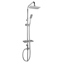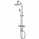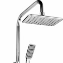 Комплектация: функциональная лейка 55х250 мм. Режим: распыление Верхняя поворотная душевая лейка «Тропический дождь» 190х150 мм Регулируемое по высоте крепление для лейки Регулируемая по высоте мыльница Душевой шланг 1,5 м (стальной, оплетка с двойным загибом) Шланг 0,8 м для подключения к смесителю (стальной, оплетка с двойным загибом)