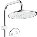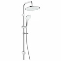 Устройство: душевая система • Ручная лейка: размер 100 мм, настройки 3 шт • Верхний душ: размер 250 мм, настройки 1 шт • Комплектация: лейка, стойка, шланг, крепление лейки, мыльница
