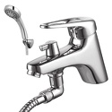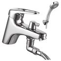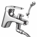 Назначение: ванна+душ • Конструкция: однорычажный • Монтаж: горизонтальный • Клапан: керамический • Подводка: гибкая • Монтажные отверстия: 1 отверстие • Форма излива: традиционная • Душевая лейка в комплекте: есть • Держатель для душевой лейки: настенный держатель • Аэратор: есть • Донный клапан в комплекте: есть