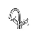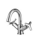 Назначение: для умывальника • Конструкция: двухрычажный • Монтаж: горизонтальный • Клапан: керамический • Материал: покрытие - хром • Подводка: гибкая • Монтажные отверстия: 1 отверстие диаметром 35 мм • Форма излива: традиционная • Душевая лейка в комплекте: нет • Аэратор: есть • Донный клапан в комплекте: есть