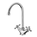 Назначение: универсальный • Конструкция: с раздельными клапанами • Монтаж: вертикальный • Клапан: керамический • Материал: покрытие - хром • Подводка: жесткая • Монтажные отверстия: 2 отверстия • Форма излива: традиционная • Душевая лейка в комплекте: есть • Держатель для душевой лейки: настенный держатель • Аэратор: есть • Эксцентрики в комплекте: есть • Донный клапан в комплекте: есть
