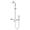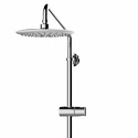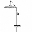 Устройство: душевая система • Смеситель: термостатический • Ручная лейка: размер 119 мм, настройки 3 шт • Верхний душ: размер 230 мм, настройки 1 шт • Комплектация: ручной душ, смеситель, стойка, шланг, крепление ручного душа, полка