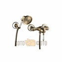 Назначение: душ • Конструкция: однорычажный • Монтаж: вертикальный • Клапан: керамический • Материал: покрытие - бронза • Подводка: жесткая • Монтажные отверстия: 2 отверстия • Душевая лейка в комплекте: есть • Держатель для душевой лейки: настенный держатель • Донный клапан в комплекте: есть