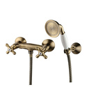 Назначение: душ • Конструкция: двухрычажный • Монтаж: вертикальный • Материал: покрытие - бронза • Подводка: жесткая • Монтажные отверстия: 2 отверстия • Душевая лейка в комплекте: есть • Держатель для душевой лейки: настенный держатель • Эксцентрики в комплекте: есть • Донный клапан в комплекте: есть