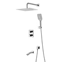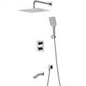 Устройство: душевая система • Смеситель: термостатический • Ручной душ (душевая лейка): размер 98 мм, настройки 3 шт • Верхний душ (тропический): размер 300 мм, настройки 1 шт • Комплектация: ручной душ, верхний душ, смеситель, шланг, крепление ручного душа