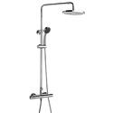 Комплектация - Верхний душ, Материал корпуса - Латунь, Присоединительный размер - 1\2", Тип подводки - Жесткая, Покрытие - Хром, Поворотный излив - Нет, Термостат - Есть, Встраиваемый - Нет, Назначение - Для ванны и душа, Тип - Двухзахватный, Форма излива - Отсутствует, Количество монтажных отверстий - 2, Донный клапан - Нет, Цвет - Серебристый, Высота - 138, S-образные эксцентрики - Есть