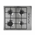 Поверхность: варочная панель • Тип поверхности: газовая • Рабочая поверхность: нерж.сталь • Число конфорок: 4 • Установка: независимая • Газовые конфорки: всего - 4 • Газ-контроль конфорок: есть • Тип управления: механическое • Переключатели: поворотные • Электроподжиг: есть, автоматический • Размеры: 600x510x90 мм • Размер ниши для встраивания: 560x480 мм • Цвет: панель - нерж.сталь