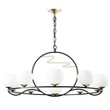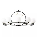 Подвесная люстра стиля модерн для гостиной, кабинета или спальни имеет размеры 1100x1300 мм. Арматура светильника окрашена в золотой и черный цвет. Лампы в комплекте - отсутствуют. В светильнике применяются лампы накаливания или светодиодная LED-лампа. Цвет плафонов - белый, с матовой поверхностью. Материал плафонов - стекло. Класс электробезопасности - I, степень пылевлагозащиты (IP) - 20. Максимальная мощность лампы (Вт) - 40. Светильник размещается на потолоке.