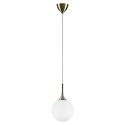 Подвесной светильник стиля модерн для гостиной, кабинета, кухни, прихожей или спальни имеет размеры 200x1420 мм. Арматура светильника окрашена в бронзовый цвет. Лампы в комплекте - отсутствуют. В светильнике применяются лампы накаливания или светодиодная LED-лампа. Цвет плафонов - белый, с матовой поверхностью. Материал плафонов - стекло. Класс электробезопасности - I, степень пылевлагозащиты (IP) - 20. Максимальная мощность лампы (Вт) - 40. Светильник размещается на потолоке.