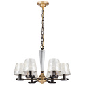 Подвесная люстра стиля классика для гостиной, кабинета или спальни имеет размеры 660x1240 мм. Арматура светильника окрашена в золотой и черный цвет. Лампы в комплекте - отсутствуют. В светильнике применяются лампы накаливания или светодиодная LED-лампа. Цвет плафонов - светло-серый, с матовой поверхностью. Материал плафонов - текстиль. Класс электробезопасности - I, степень пылевлагозащиты (IP) - 20. Максимальная мощность лампы (Вт) - 40. Светильник размещается на потолоке.