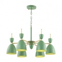 Подвесная люстра стиля модерн для гостиной, кабинета или спальни имеет размеры 680x690 мм. Арматура светильника окрашена в зеленый и золотой цвет. Лампы в комплекте - отсутствуют. В светильнике применяются лампы накаливания или светодиодная LED-лампа. Цвет плафонов - зеленый, с матовой поверхностью. Материал плафонов - металл. Класс электробезопасности - I, степень пылевлагозащиты (IP) - 20. Максимальная мощность лампы (Вт) - 60. Светильник размещается на потолоке.