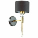 Бра стиля классика для гостиной, кабинета или спальни имеет размеры 140x320x200 мм. Арматура светильника окрашена в латунный и черный цвет. Лампы в комплекте - отсутствуют. В светильнике применяются лампы накаливания или светодиодная LED-лампа. Цвет плафонов - черный, с матовой поверхностью. Материал плафонов - металл, текстиль. Класс электробезопасности - II, степень пылевлагозащиты (IP) - 20. Максимальная мощность лампы (Вт) - 60. Светильник размещается на стене.
