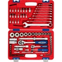 Набор: 82 шт • Ключи: комбинированные • Головки: 6-ти гранные головки, свечные • Ключей-трещоток: 2 шт • Хранение: пластиковый кейс