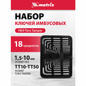 | 119311, г. Москва, ул. Строителей, д. 11, корпус 1 Набор ключей имбусовых HEX-TORX, 18 шт: HEX 1,5–10 мм, T10-T50, CrV, удлиненные, сатин.// Matrix Доставка — стоимость доставки заказа указывается в момент оформления заказа. Из Москвы. | 1 620 руб. | В магазин | |
