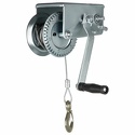 Шестерёнчатая лебедка имеет прочный стальной корпус и стальной шестеренчатый механизм, который приводится в движение вращением ручки. Предназначена только для горизонтального перемещения грузов. Используется при установке оборудования, такелажных и погрузочно-разгрузочных работах. Лебедка особенно удобна при работах вне помещения, при отсутствии электричества. Запрещается использовать для подъёма грузов.
