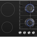 HiLight + газ на 4 конфорки • cтеклокерамика • мощность: 6400 Вт • автоматический электроподжиг • газ-контроль • решетки: чугун • независимая установка • размеры (ШхГ): 59x51.5 см