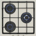 газовая на 3 конфорки • закаленное стекло • мощность: 5700 Вт • газ-контроль • решетки: чугун • независимая установка • размеры (ШхГ): 44x51 см