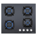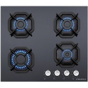 Поверхность: варочная панель • Тип поверхности: газовая • Рабочая поверхность: закаленное стекло • Число конфорок: 4 • Установка: независимая • Газовые конфорки: всего - 4 • Газ-контроль конфорок: есть • Тип управления: механическое • Переключатели: поворотные • Электроподжиг: есть, автоматический • Размеры: 590x515x51 мм • Размер ниши для встраивания: 560x485 мм • Цвет: панель - черный