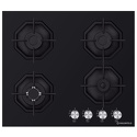Поверхность: варочная панель • Тип поверхности: газовая • Рабочая поверхность: закаленное стекло • Число конфорок: 4 • Установка: независимая • Газовые конфорки: всего - 4 (1 конфорка "Тройная корона") • Газ-контроль конфорок: есть • Тип управления: механическое • Переключатели: поворотные • Электроподжиг: есть, автоматический • Размеры: 590x515x51 мм • Размер ниши для встраивания: 560x485 мм