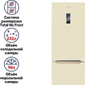 отдельностоящий • полный No Frost • электронное управление • класс A+ • полезный объём: 330 л (232 + 98 л) • инверторный компрессор • перенавешиваемые двери • полка для вина • лоток для яиц • 59.5x67.6x185.8 см • бежевый