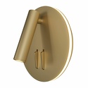 Бра стиля техно для гостиной, кабинета или спальни имеет размеры 140x65 мм. Арматура светильника окрашена в золотой цвет. Лампы в комплекте - светодиодные [LED]. В светильнике применяются светодиодная LED-лампа. Цвет плафонов - золото, с глянцевой поверхностью. Материал плафонов - дюралюминий. Класс электробезопасности - I, степень пылевлагозащиты (IP) - 20. Максимальная мощность лампы (Вт) - 9. Светильник размещается на стене.