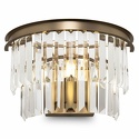 Накладной светильник стиля модерн для гостиной, кабинета, коридора, прихожей или спальни имеет размеры 165х245х330 мм. Арматура светильника окрашена в латунный цвет. Лампы в комплекте - отсутствуют. В светильнике применяются лампы накаливания или светодиодная LED-лампа. Цвет плафонов - неокрашенный, с прозрачной поверхностью. Материал плафонов - стекло. Класс электробезопасности - I, степень пылевлагозащиты (IP) - 20. Максимальная мощность лампы (Вт) - 40. Светильник размещается на стене.