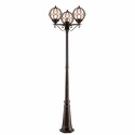 Фонарный столб стиля классика для улицы имеет размеры 540x2150 мм. Арматура светильника окрашена в золотой с патиной цвет. Лампы в комплекте - отсутствуют. В светильнике применяются лампы накаливания или светодиодная LED-лампа. Цвет плафонов - янтарный, с матовой поверхностью. Материал плафонов - стекло. Класс электробезопасности - I, степень пылевлагозащиты (IP) - 65. Максимальная мощность лампы (Вт) - 100. Светильник размещается на земле.
