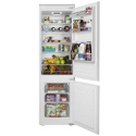 встраиваемый • полный No Frost • сенсорное управление • класс A+ • полезный объём: 241 л (177 + 64 л) • инверторный компрессор • зона свежести • перенавешиваемые двери • полка для вина • лоток для яиц • 54x55x176.9 см • белый
