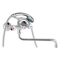 Встраиваемый - Нет, S-образные эксцентрики - Нет, Донный клапан - Нет, Термостат - Нет, Тип подводки - Жесткая, Количество монтажных отверстий - 2, Тип - Двухзахватный, Форма излива - Традиционная, Высота - 15, Комплектация - Держатель душевой лейки, душевой шланг, ручной душ, Материал корпуса - Латунь, Аэратор - Есть, Длина излива - 300, Покрытие - Хром, Назначение - Для ванны и душа, Поворотный излив - Да, Присоединительный размер - 1\2", Глубина - 30, Цвет - Серебристый, Ширина - 17.3