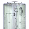Закрытая кабина, полностенная, двери раздвижные, материал поддона: акрил, материал стенок: стекло, тропический душ, вертикальный гидромассаж, габариты (ШхВхД): 90x215x90 см