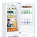 встраиваемый • скользящие направляющие • No Frost (морозильная камера) • электронное управление • класс A+ • полезный объём: 238 л (182 + 56 л) • перенавешиваемые двери • складная полка • полка для вина • лоток для яиц • 54x54x176.9 см • белый