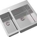 Форма чаши: прямоугольная • Материал: нерж. сталь • Количество чаш: 1 основная, 1 дополнительная • Установка: врезная • Глубина чаши: 18.8 см • Измельчитель пищевых отходов: нет • Размеры: 61.60x50.60 • Мотажное отверстие: 61.60x50.60 • Диаметр сливного отверстия: 3 "