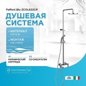Комплектацияручной душ (душевая лейка), верхний душ (тропический), смеситель, стойка/штанга, душевой шланг, крепление ручного душа