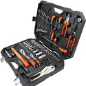 КомплектацияГоловки торцевые шестигранные 1/4:10шт.Головки торцевые шестигранные 1/2:13шт.Головки торцевые шестигранные 1/4:5шт.Удлинитель 1/4Удлинитель 1/2Шарнир карданный 1/4Шарнир карданный 1/2Рукоятка-переходник для вставок-бит 1/4Адаптер-переходник для бит 1/4Головки свечные 1/2:2шт.Ключ с шестигранной головкой:3шт.Комбинированные ключи:8шт.ПассатижиМолоток слесарныйРучной зажимПереставные клещиОтвертка:5шт.Вставка-бита 1/4:14шт.Рукоятка трещоточная 1/4, 72 зубцаРукоятка трещоточная 1/2, 72 зубцаКейс пластиковый