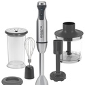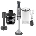 Тип: погружной (ручной) блендер • Скорости: 25 шт, плавная регулировка, импульсный • Насадки: ножка, венчики, нож для измельчителя • Дополнительно: для пюре