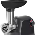 Номинальная мощность: 220 Вт • Реверс: есть • Производительность: 1.8 кг/мин • Насадки-решетки: Есть, 2 штуки (7 мм, 5 мм) • Резиновые ножки: есть • Лоток для подачи продуктов: пластик • Цвет корпуса: серый • Время непрерывной работы: 3 мин • Максимальная мощность: 1800 Вт