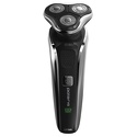 Тип: роторная, 3 головки (сетки) • Насадки: встроенный триммер • Функции: влажное бритье, промывка водой • Питание: аккумулятор, до 75 мин