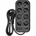 Производитель: Powercom Модель: SP-08 USB03AB - сетевой фильтр - кабель 1.8 м - 8 розеток Schuko (евро с заземлением) / 4000 Вт/USB Описание