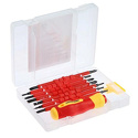 Комплектация1) Рукоять отвертки2) Двухсторонний изолированный стержень 160 mm шлицы PH2-SL63) Двухсторонний изолированный стержень 160 mm с шлицами PH1-SL54) Двухсторонний изолированный стержень 160 mm с шлицами PH0-SL35) Двухсторонний изолированный стержень 160 mm с шлицами Y1-Y26) Двухсторонний изолированный стержень 160 mm с шлицами Т15-Т257) Двухсторонний изолированный стержень 160 mm с шлицами Т10-Т208) Двухсторонний изолированный стержень 160 mm с шлицами U2,6-TR2,3