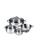 набор кастрюль • нержавеющая сталь • покрытие отсутствует • крышка стеклянная