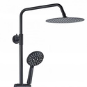 Устройство: душевая система • Смеситель: термостатический • Ручной душ (душевая лейка): размер 120 мм • Верхний душ (тропический): размер 250 мм, настройки 1 шт • Комплектация: ручной душ, верхний душ, смеситель, стойка, шланг, крепление ручного душа