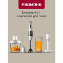 Производитель: Redmond Модель: RHB-2973 - Тип: погружной (ручной) блендер - Мощность: 800 Вт - Скорости: 5 шт, плавная регулировка, импульсный - Насадки: ножка, венчики, нож для измельчителя - Дополнительно: для пюре Описание